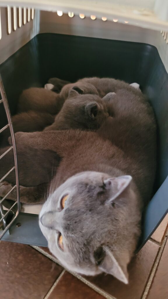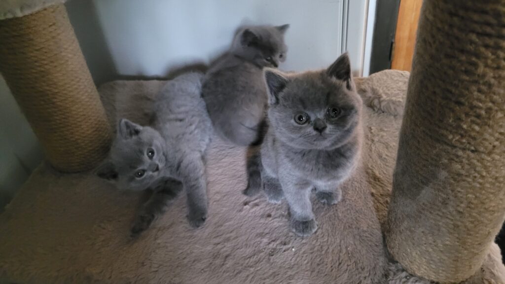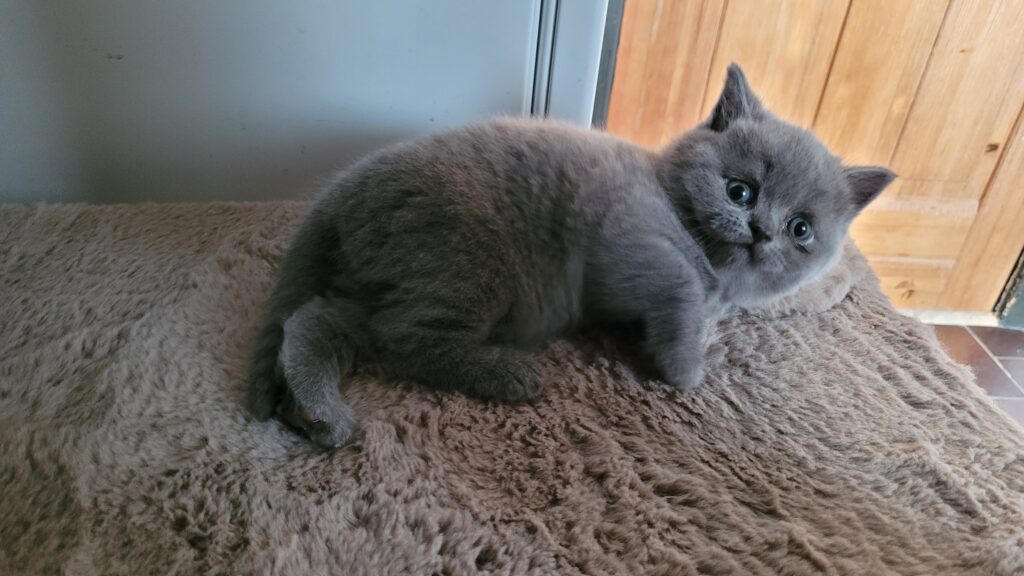 Killingerne er nu 6 uger gamle og begyndt at spise selv. De går på bakke og er allerede renlige. De er klar til at flytte hjemmefra den 18. august, så er du interesseret kan jeg kontaktes på 4226 5049. Jeg har opdrættet siden 1986, og har altid vægtet temperament højt. Derudover har jeg fastholdt den blå farve, da jeg synes, den er smuk, og derudover er det den oprindelige farve. Mor er La Chatte Sille og far er Diego vom Werratalstern.